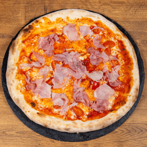 Tomatensauce, Mozzarella Fior di Latte und italienischem Schinken